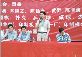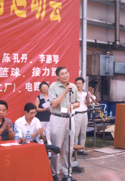 集團團委、工會2003年聯合主辦了超聲集團首屆職工體育運動會。運動會曆時五個多月,共設立了十個(大)項目的比賽,參賽選手近600人次。圖爲2003年4月份之開(kāi)幕式。下圖爲集團公司副總經(jīng)理劉永锴同志宣布運動會開(kāi)幕。