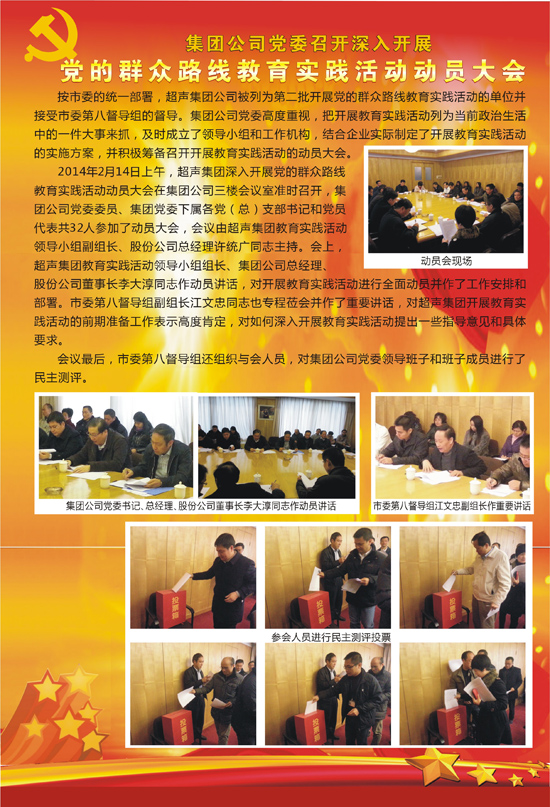 第二批黨的群衆路線教育實踐活動的持續深入開(kāi)展,對(duì)促進(jìn)我司領導班子及成(chéng)員的作風建設十分明顯,在集團公司黨委書記、總經(jīng)理李大淳同志的帶頭示範下,領導班子成(chéng)員紛紛轉換思想和思維、切實改進(jìn)工作作風,努力踐行群衆路線,經(jīng)常深入各聯系點開(kāi)展調研,幫助基層企業解決難點問題,把脈企業發(fā)展,消滅了聯系服務職工群衆“最後(hòu)一公裡(lǐ)”問題。現將(jiāng)階段來部分班子成(chéng)員開(kāi)展調研的情況紀實如下: